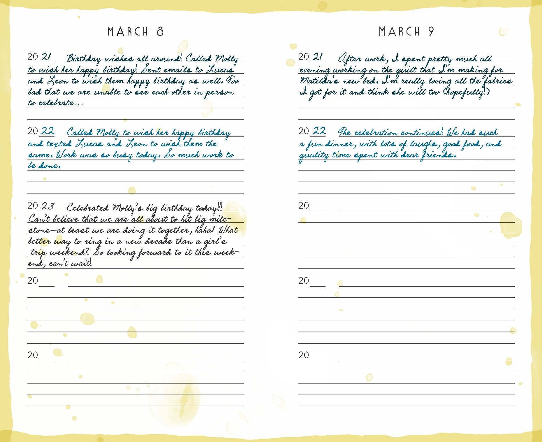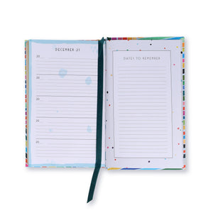 This stunning memory book is a simple and rewarding way to reflect and record. The pages offer space to write a brief line each day, while allowing you to compare today's events with your notes from the same date in years past. With exuberant artwork by Kindah Khalidy on the cover and interior, and with foil accents and a ribbon page marker, this keepsake journal will brighten all your days.