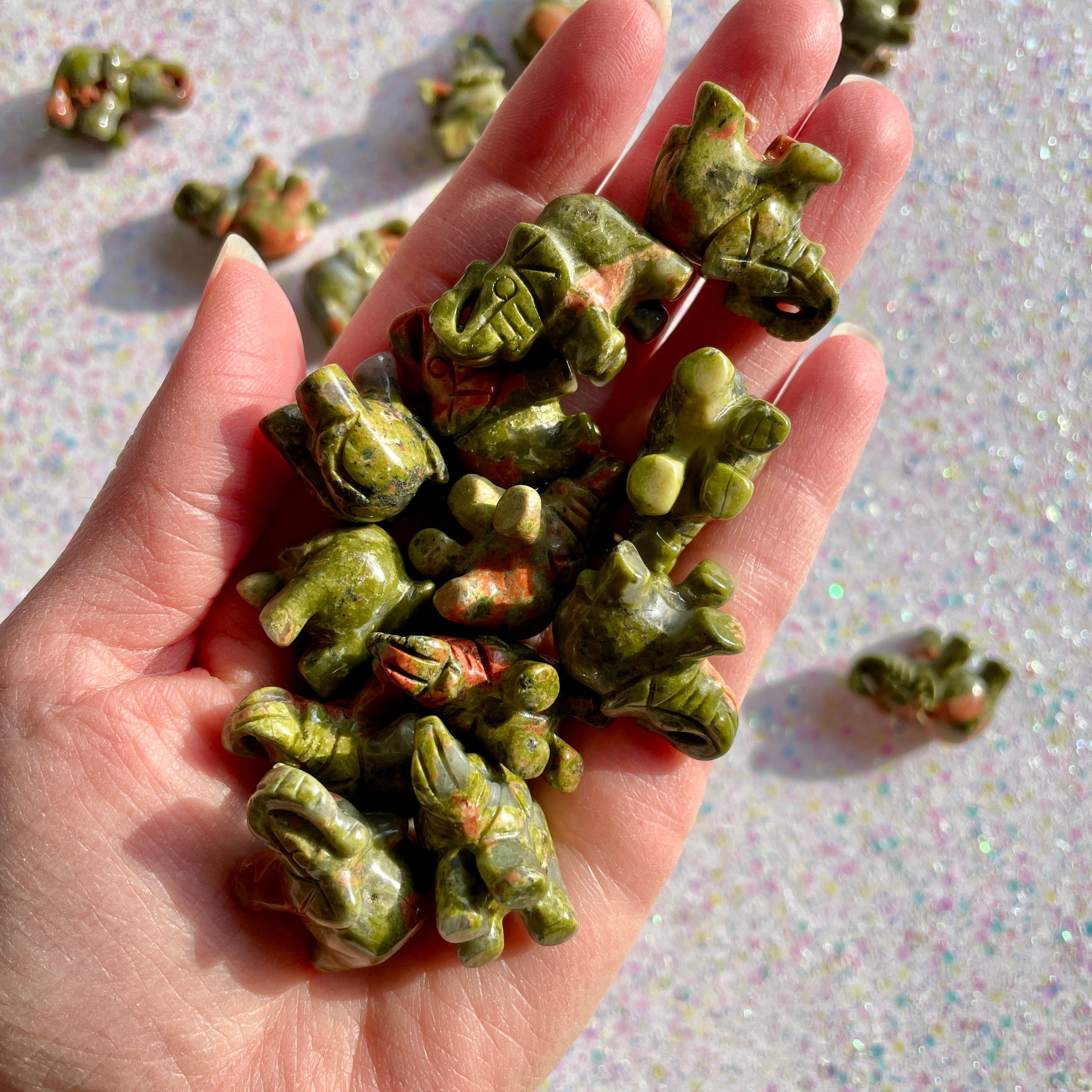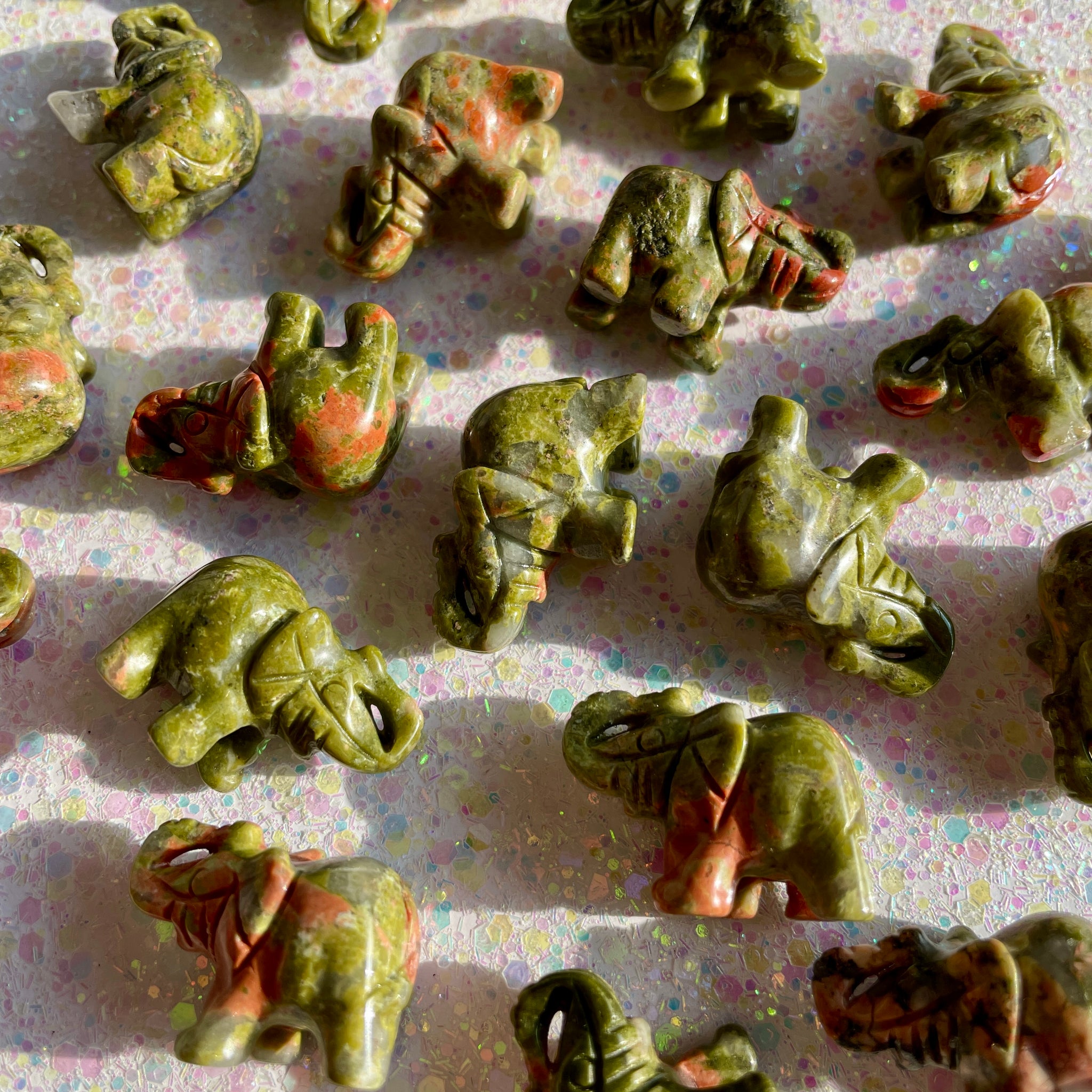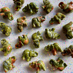 You will receive 1 Unakite elephant carving and a meaning card with your order.