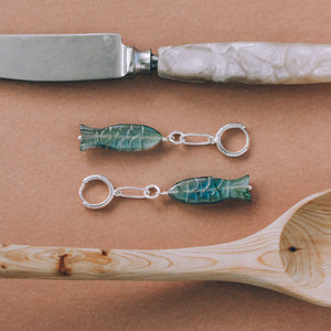 This style features a sardine-shaped charm carved from genuine labradorite, suspended from polished silver-plated huggie hoops for a look that’s both playful and on-trend. The cool tone of the silver pairs beautifully with the natural shimmer of labradorite, creating a piece that’s easy to merchandise across seasonal and themed assortments.