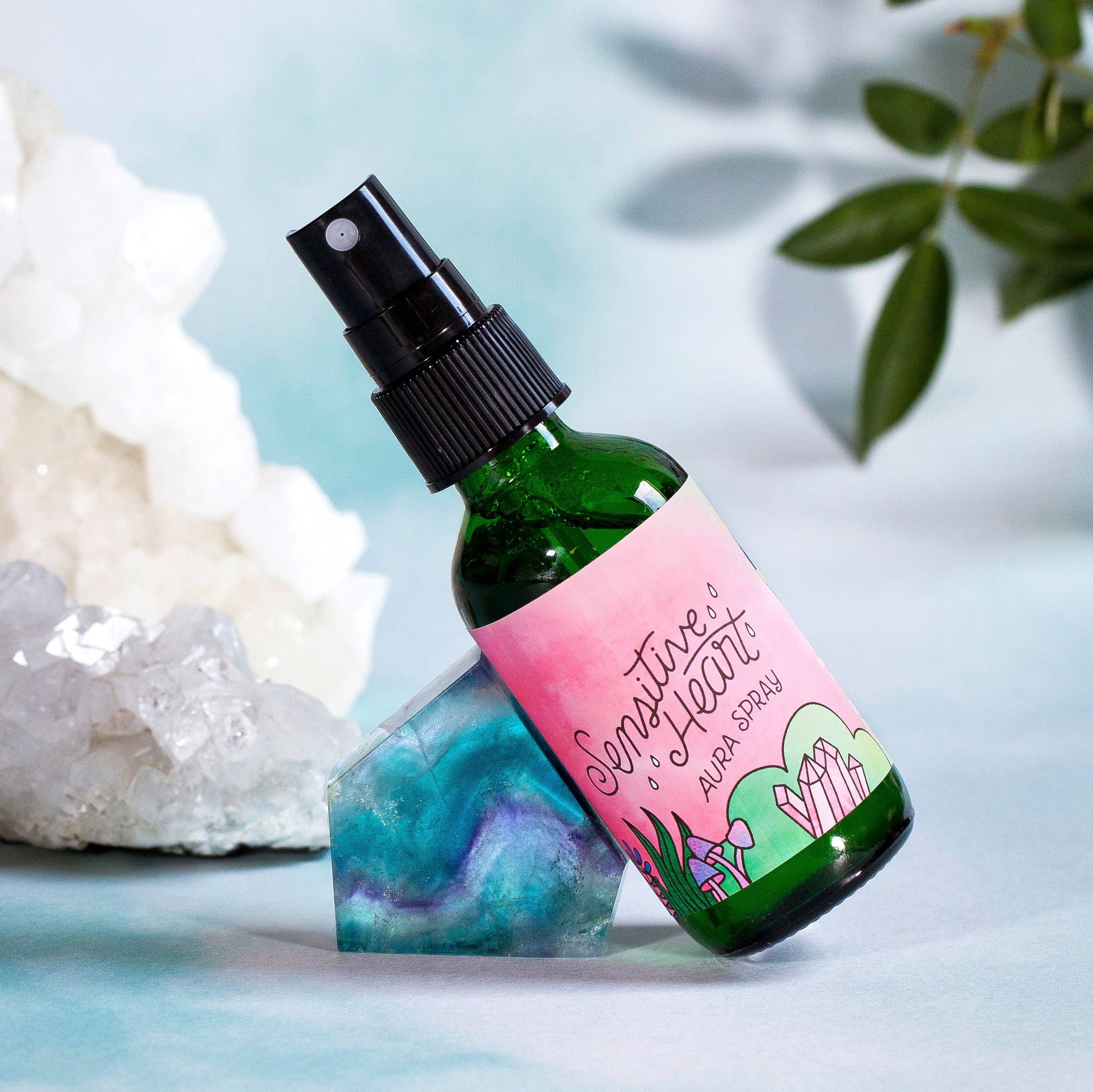 INGREDIENTS: Distilled water, alcohol, peridot and rose quartz gem essence, essential oils of rose geranium, lavender and grapefruit. 2oz bottle. External use only.