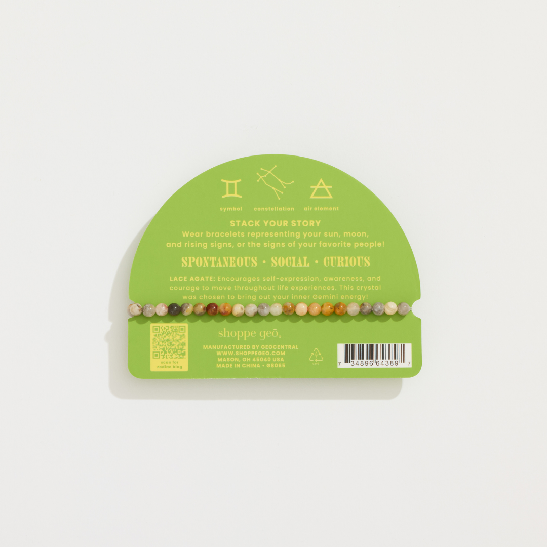 Balancing 4mm beaded Crazy Lace Agate stretch bracelet, perfect for those with Gemini in their birth chart. Crystal meaning card included with your order.