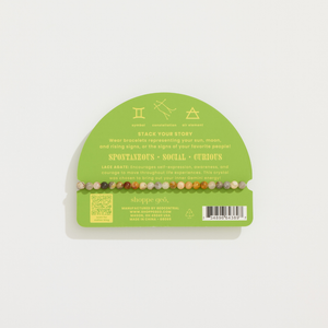 Mini Zodiac Bracelets with 4mm beads are perfect for stacking! Bracelet stacks can represent the main signs of their zodiac chart (sun, moon, and rising signs) or the zodiac signs of their favorite people! The backer card features the birth date range of the sign and a QR code linking to bonus digital content.
