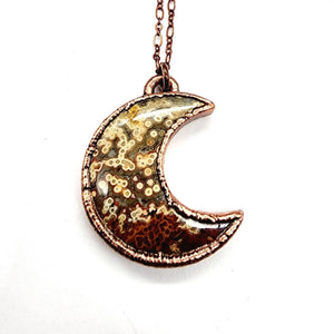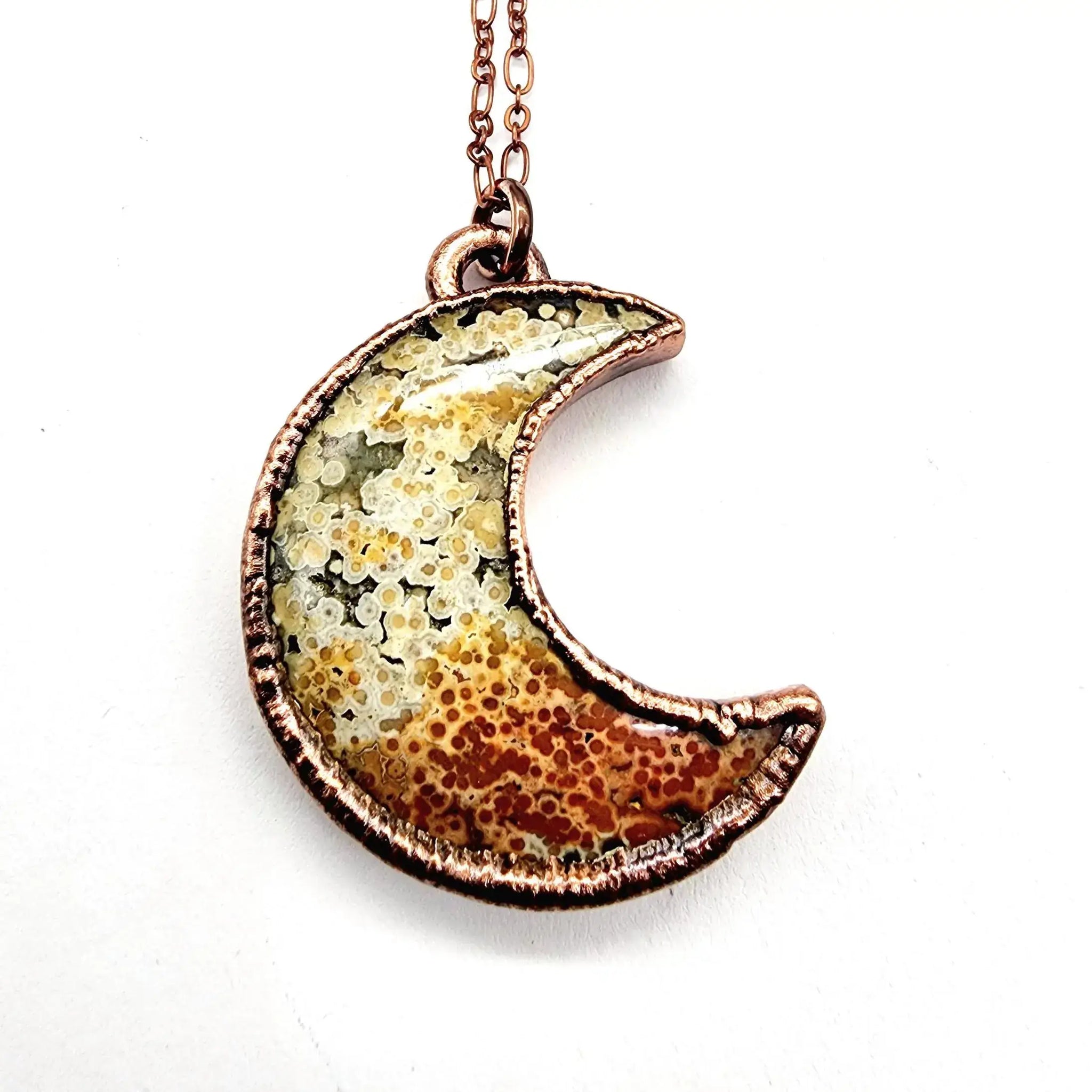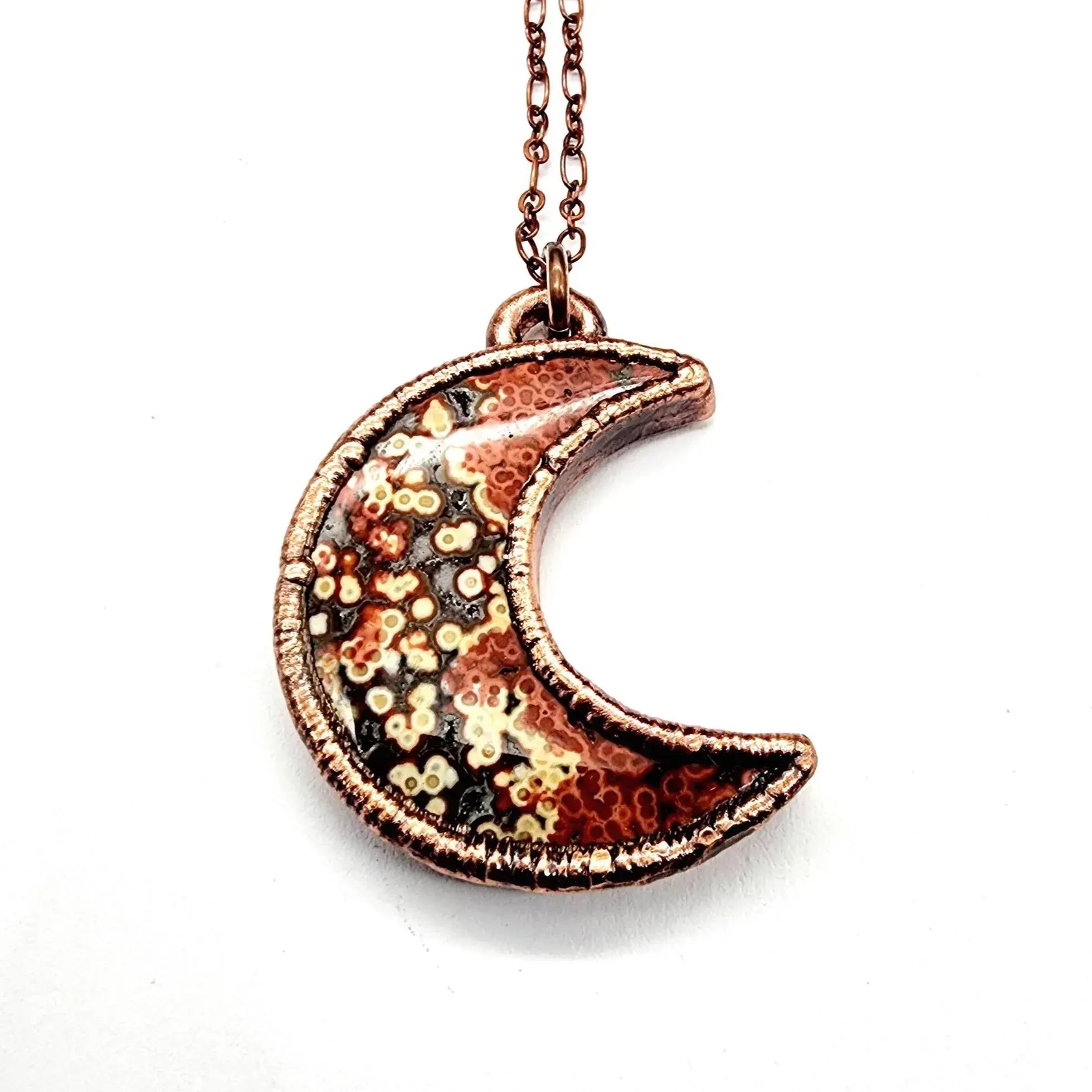 One copper electroformed Ocean Jasper Moon complete on a 20" soldered copper chain.
