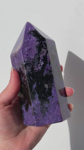 Charoite is both a stone that raises our vibrations while keeping us grounded. It inspires inner work within ourselves and prevents us from falling back to low vibrational habits, mindsets, or actions and remain on our higher path. It assists us with taking this high vibrational healing and knowledge and bringing it back down to Earth to assist and teach others.