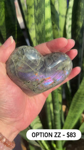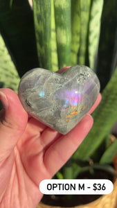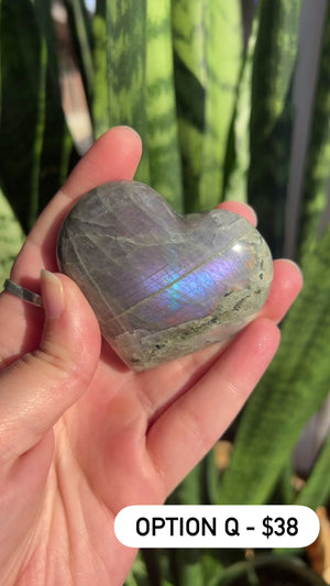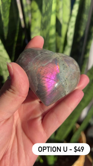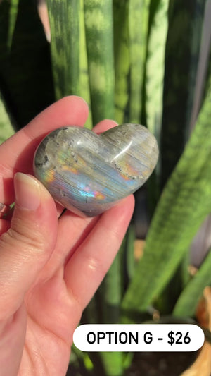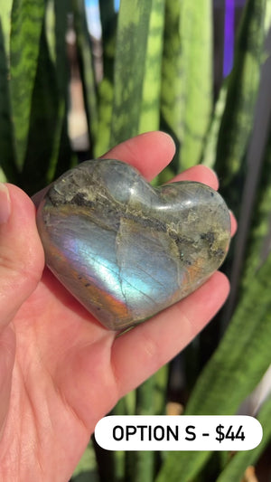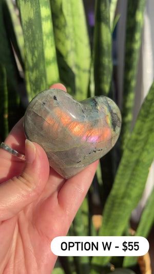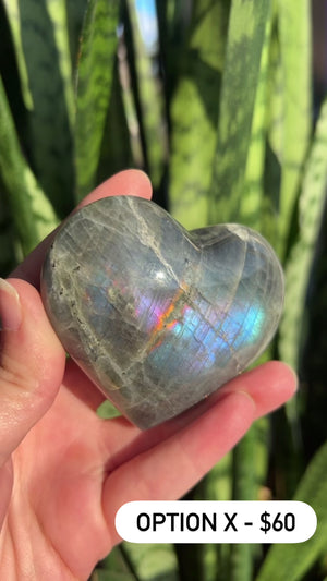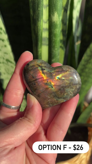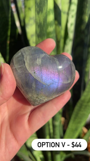 You will receive the Sunset Labradorite Heart of your choosing and a meaning card with your order.