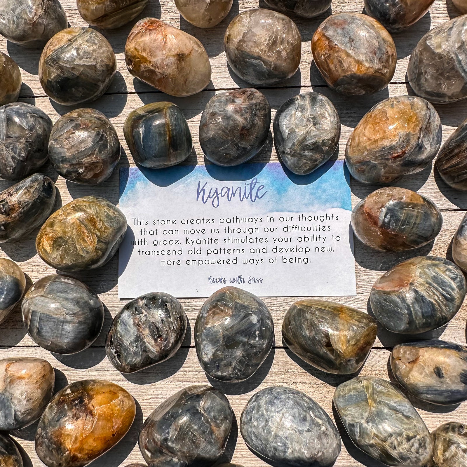Kyanite is a powerful stone that connects us with our ability to communicate from the seat of our Highest Self. This stone creates pathways in our thoughts that can move us through our difficulties with grace. Kyanite stimulates your ability to transcend old patterns and develop new, more empowered ways of Being.