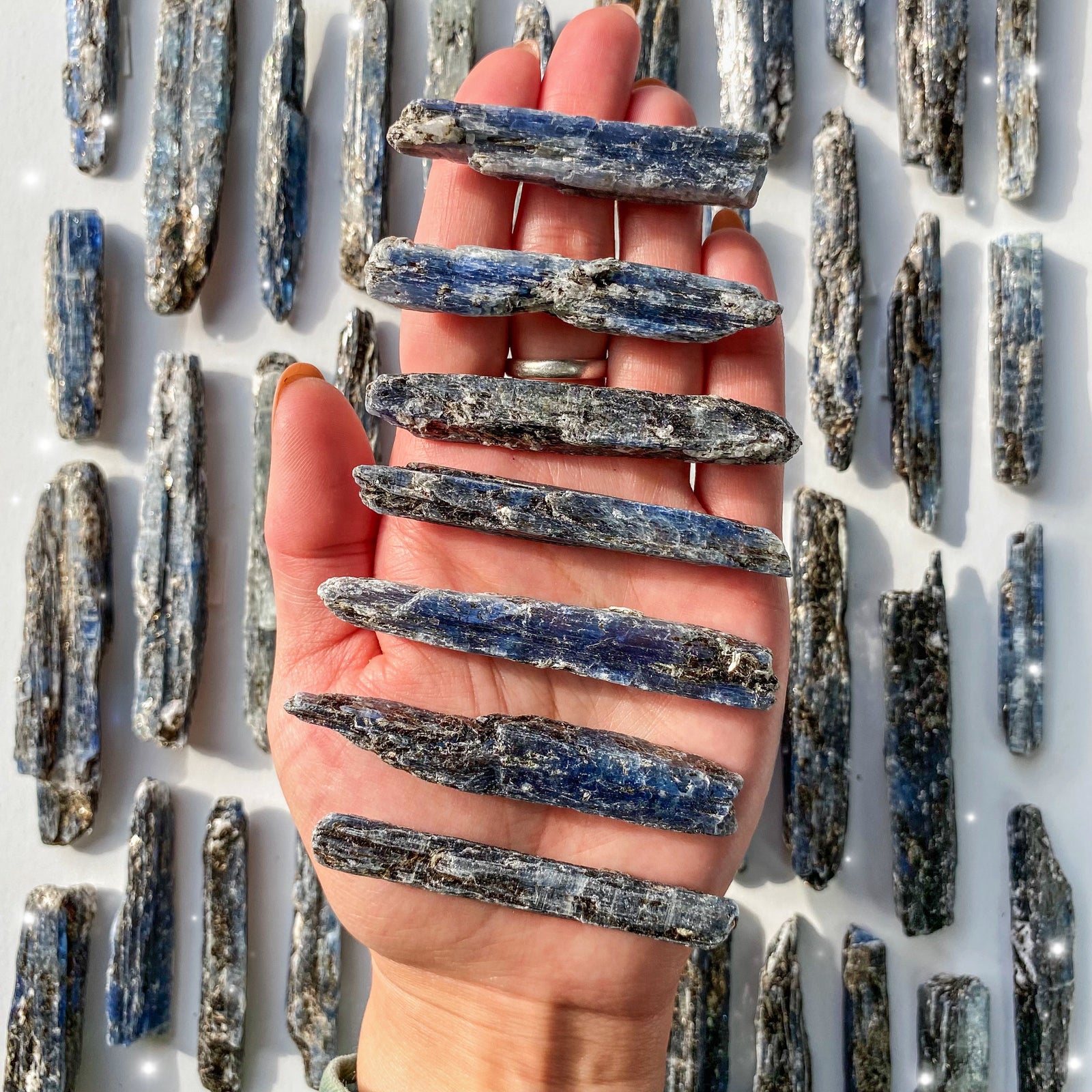 Despite its calming aura, Blue Kyanite can withstand some heat! Its mineral composition serves well in many manufactured materials including bricks, mortar, and porcelain products. Grinding wheels are made of Kyanite due to its incredible hardness. Under immense heat, Kyanite expands to twice its size which makes it a useful crystal for raw building materials that need strengthening during abrasive processes.