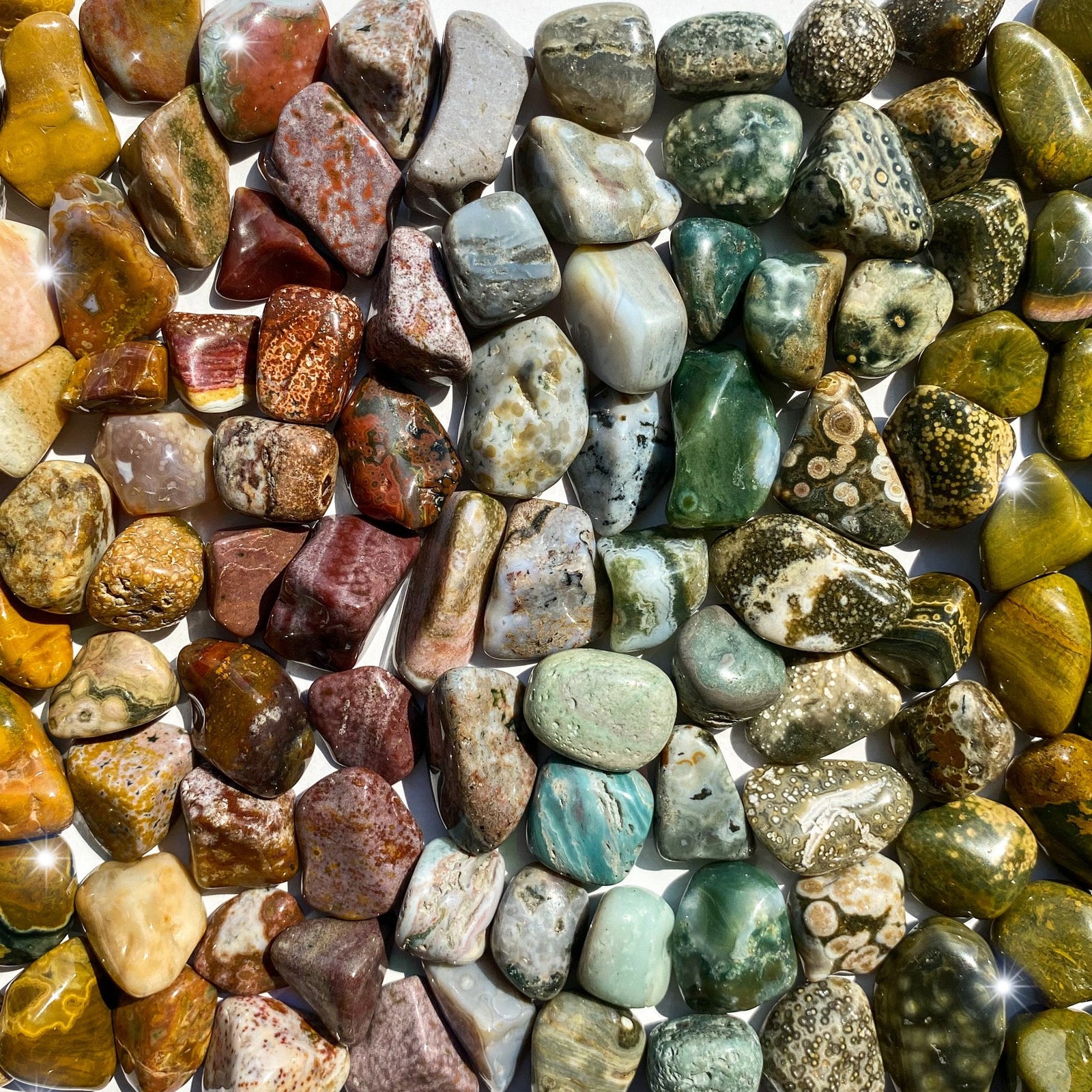 Ocean Jasper has an interesting lore and history. It was first discovered and recorded in 1922 until its location was lost. In 2000, Ocean Jasper was found again after a 45 day search along the coast of Madagascar. Its secret? The stone could only be found during low tide, which reflects its energy toward inner work and rediscovery.