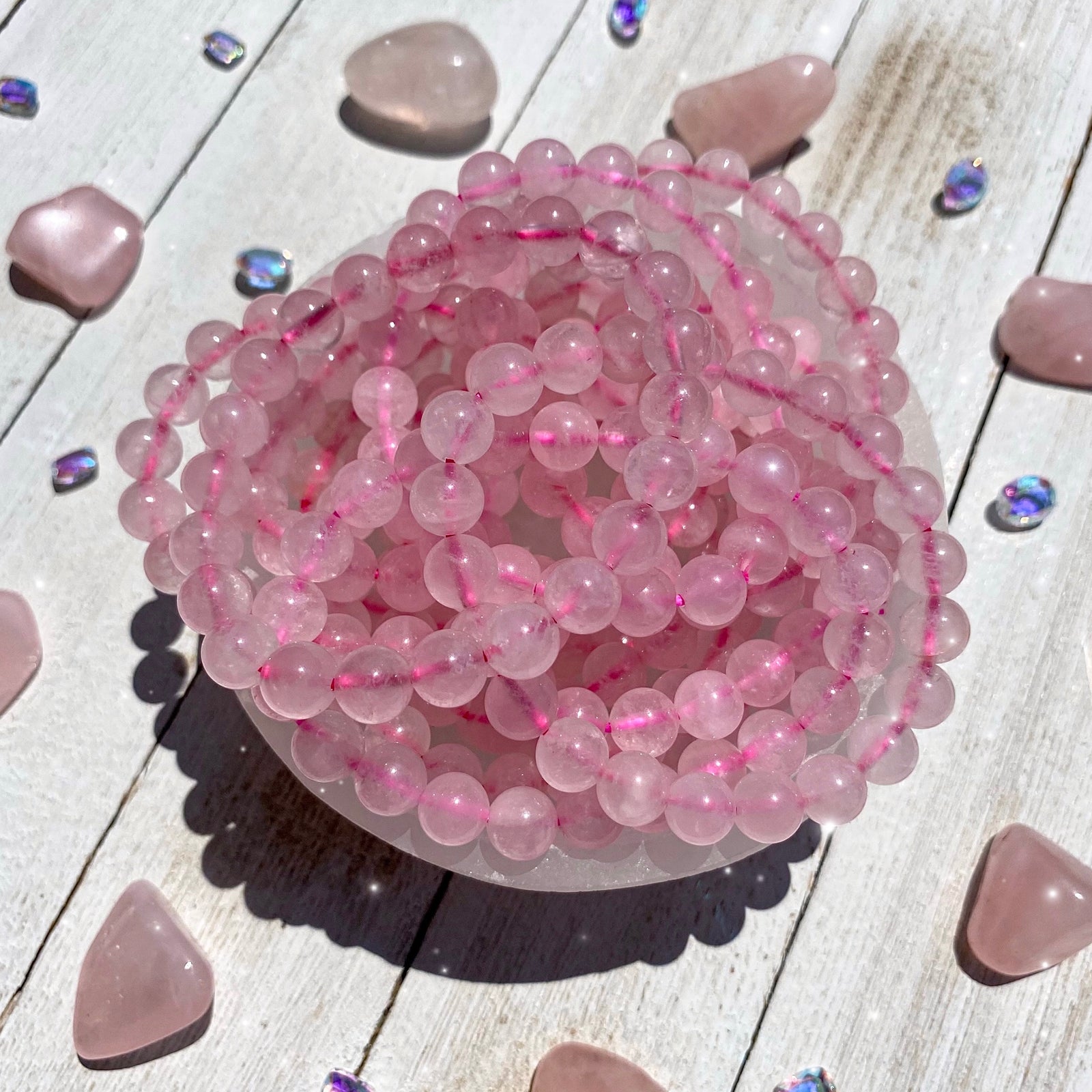 The name Rose Quartz is as old as they come, and this incredibly ancient crystal is simply, yet accurately named. Though the flower itself may look much different today, the Rose was known for its beautiful pink petals throughout history. Rose Quartz was given its name for its similarly beautiful hue. When talking about the history of Rose Quartz, it’s very difficult to pinpoint its exact date of discovery. It’s an ancient stone, one of the oldest artifacts crafted from Rose Quartz dates back to at least 7000 BC. Hand carved Rose Quartz beads thought to be used as jewelry, survived through all this time from ancient Mesopotamia. It is uncertain whether the people who crafted and adorned this Rose Quartz had a different understanding of its metaphysical properties than we do today. However, in slightly more recent history, the ancient Romans and Egyptians left many more Rose Quartz ornaments for us to discover, along with hard earned historical context! The ancient Romans used Rose Quartz as a sign of ownership, a symbol that an agreement had been made. Where the ancient Egyptians held the belief that the lovely blush colored stone could prevent the effects of aging. Forgive a bit of flowery language, but since we’re talking about Rose Quartz, doesn’t that remind you of today’s rituals? Rose Quartz beauty rollers are now commonplace and boast anti-inflammatory benefits. Often couples will exchange stones relating to love, and there’s no better example than Rose Quartz! Who wouldn’t adore a pair of matching Rose Quartz bracelets as a simple symbol of love? It seems so natural now to think of Rose Quartz as the essential stone of the heart we know and love today.