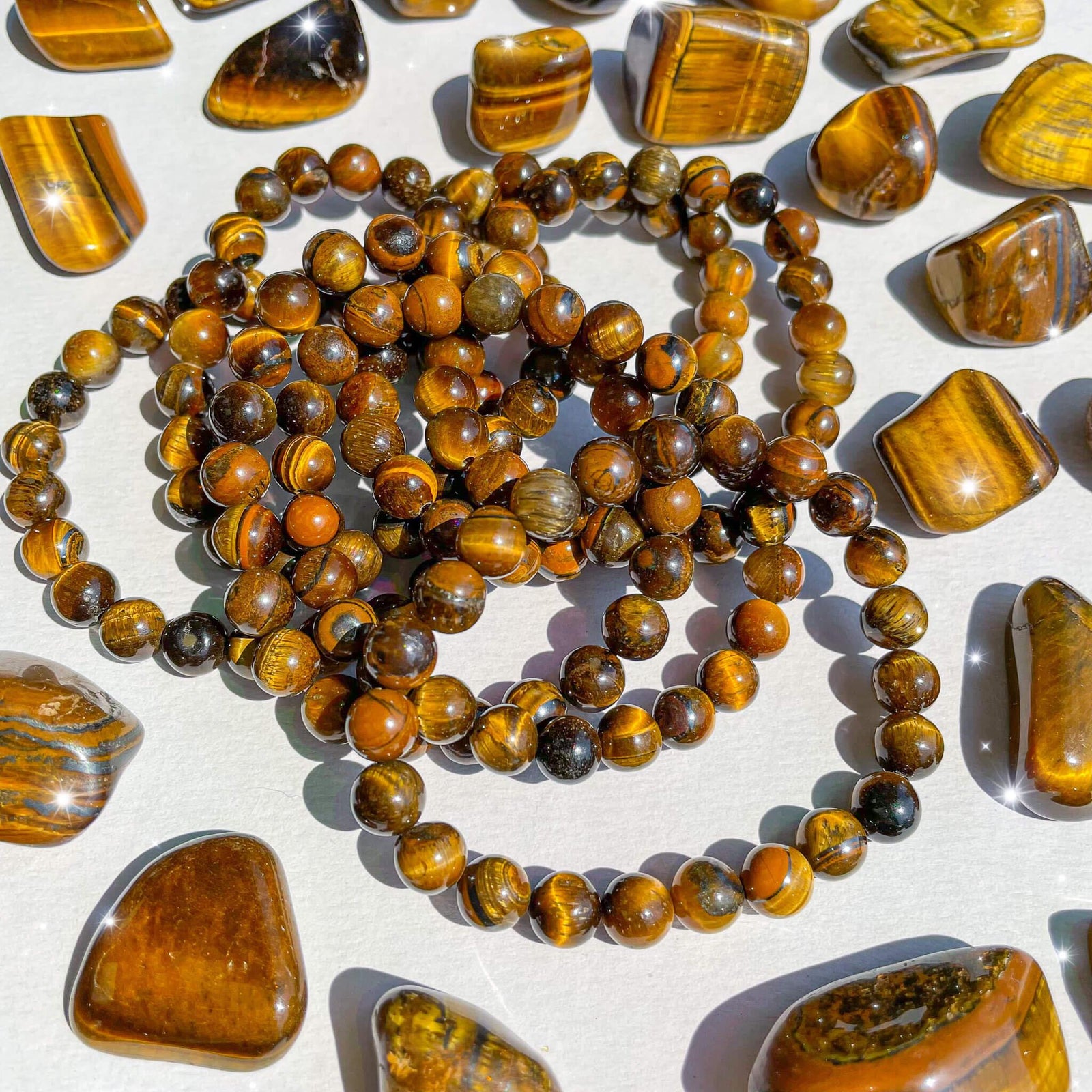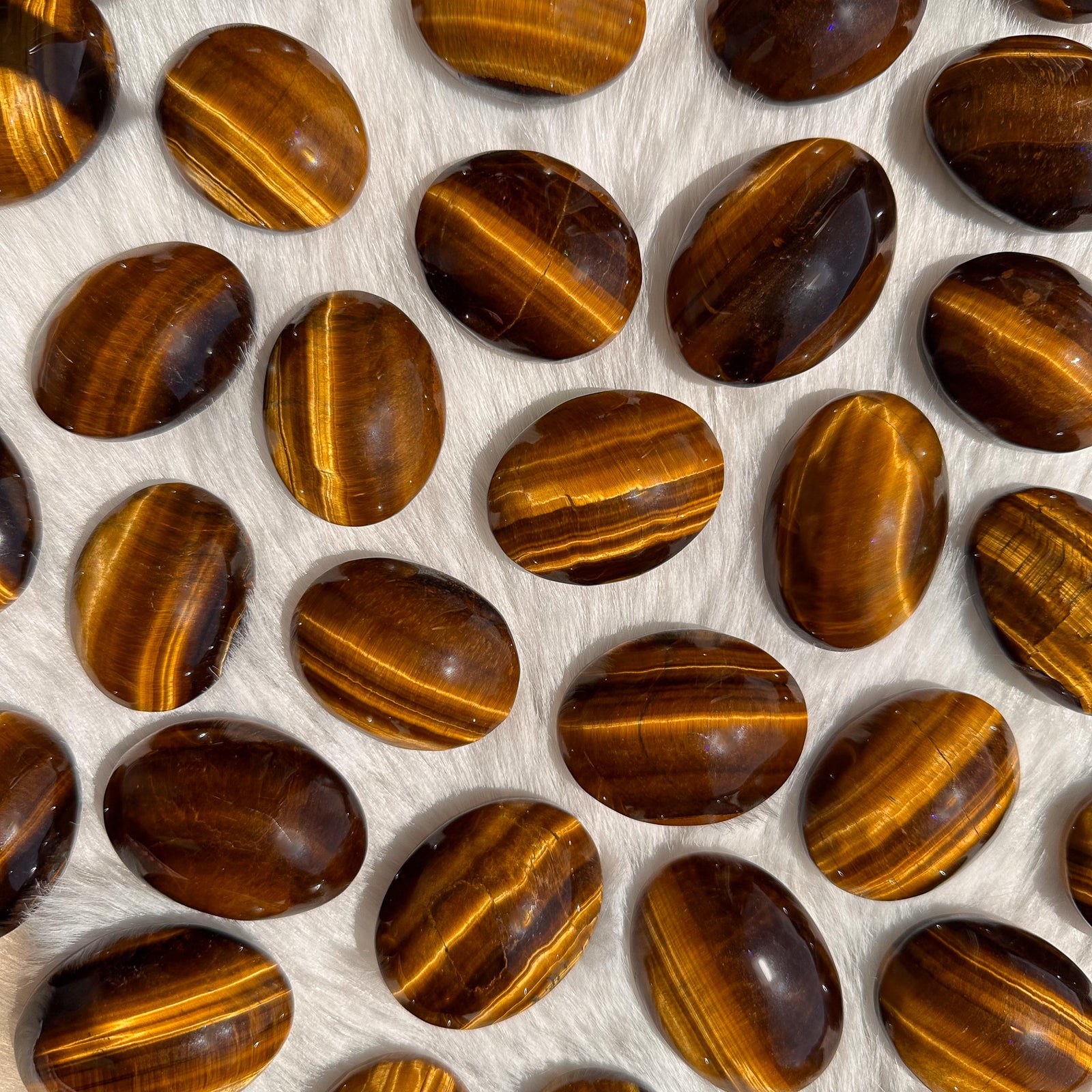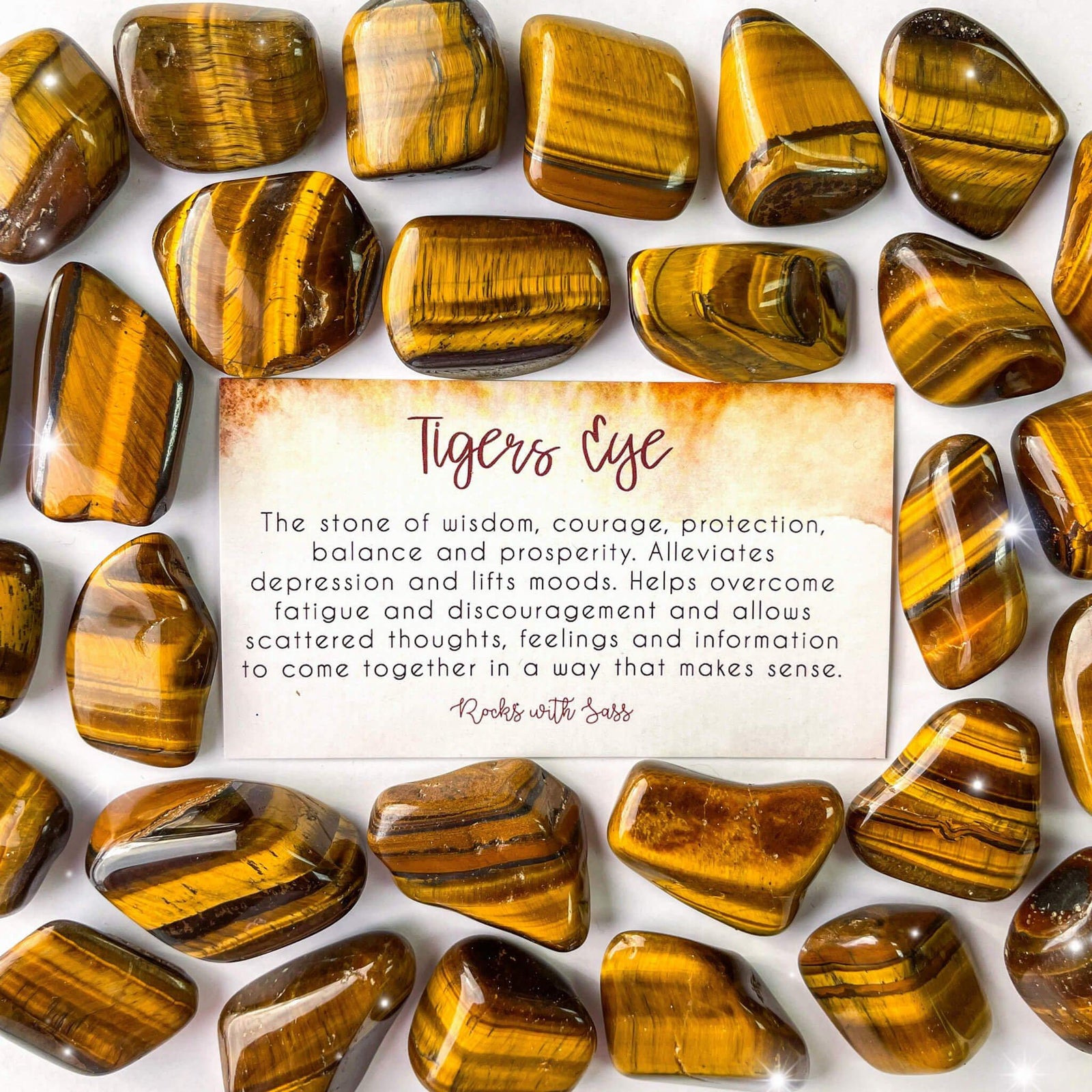 Tiger’s Eye's physical namesake comes from the needle-like fibers that reflect light off its glazed surface. The reflected light can give off a cat eye effect between its mineral stripes. Its energetic prowess echoes that of the literal name, Tiger.