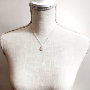 One Dainty Faceted Rainbow Moonstone Coffin complete on a 16” hypoallergenic shiny stainless steel chain.