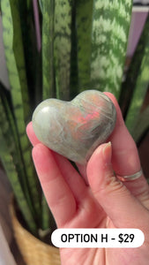 You will receive the Sunset Labradorite Heart of your choosing and a meaning card with your order.